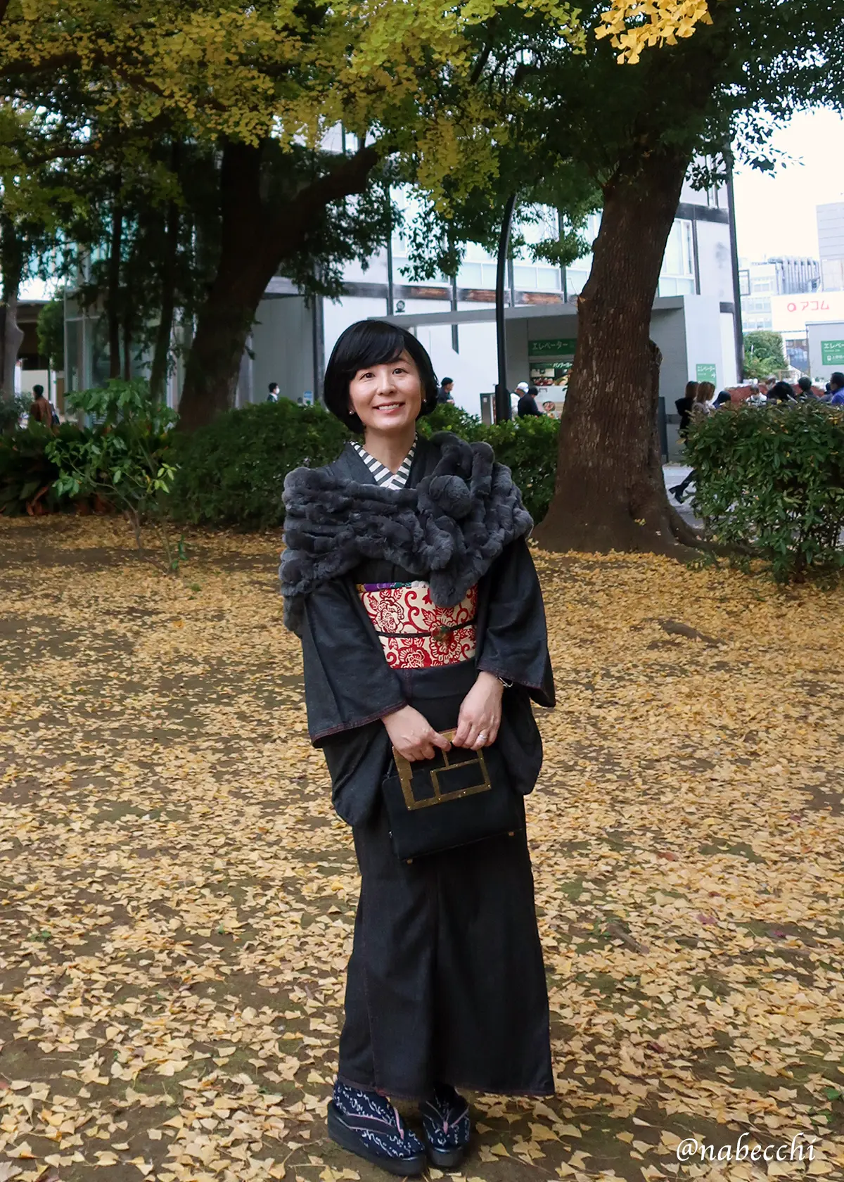 都会に溶け込む!デニム着物とボーダー半衿の黄金比