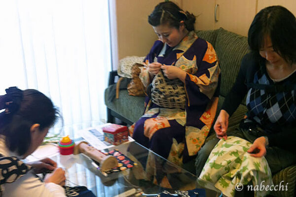 ちなみに、この記事を公開した当時は、この格好で「手ぬぐいバッグ」を習いに行っていました。素敵な方々とチクチク楽しい時間を過ごした、当時の懐かしい記録もぜひ覗いてみてくださいね。